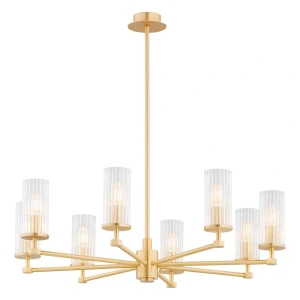 Elegancka konstrukcja: Hampton 74 to imponująca lampa wykonana z litego mosiądzu, która swoim majestatycznym wyglądem przyciągnie uwagę każdego. Szklane klosze ryflowane: Żarówki są ukryte za szklanymi kloszami ozdobionymi subtelnym ryflowaniem, co dodaje żyrandolowi wyjątkowego uroku i elegancji. Osiem punktów świetlnych: Żyrandol posiada osiem punktów świetlnych, które doskonale oświetlą nawet największe pomieszczenia, tworząc przytulną i luksusową atmosferę.
