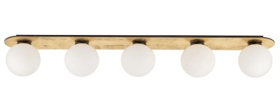 Podłużny plafon Flora Gold 5, doskonale łączy funkcjonalność i estetykę, idealną do nowoczesnych wnętrz. Z pięcioma mlecznymi kloszami, plafon w kolorze złotym zapewnia równomierne i miękkie światło, dodając wyjątkowego blasku Twojemu wnętrzu.