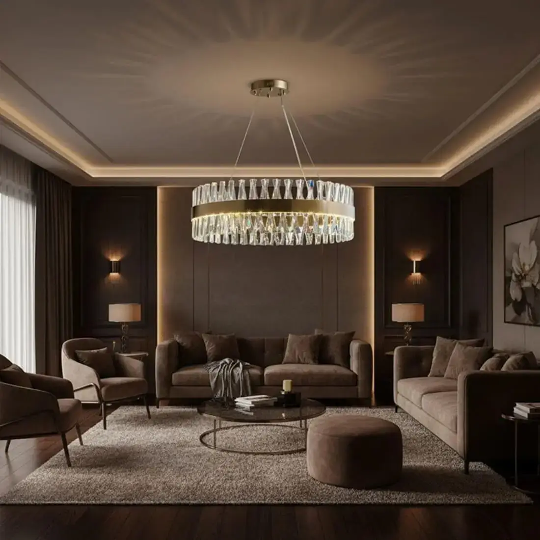 Styl wykończenia wnętrz a żyrandol okrągły kryształowy